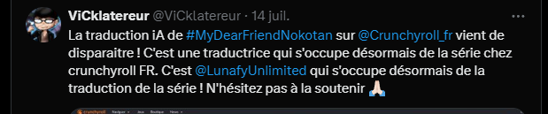 #### [**My Deer Friend Nokotan - S01E01**](https://myanimelist.net/anime/58426) - **Source**: WEB (Crunchyroll) - **Audio**: Japanese (Japan) [AAC 2.0] - **Subtitles**: French (France) - **Mediainfo**: [Click](https://x0.at/bSlk.nfo) - **CRC32**: B4FC8907 **➜** Contact us: [discord.gg/CqME4VWUnD](https://discord.gg/CqME4VWUnD) ***PS**: Hardsub (when available) and DDL only available on Discord* ---